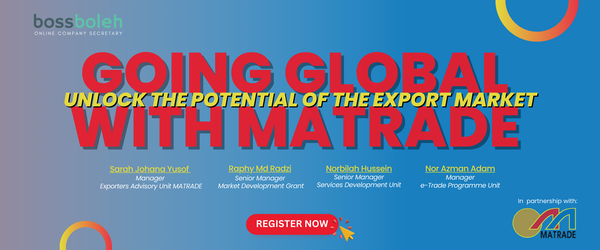 Ready to Expand Your Export Markets? Join Boss Boleh and MATRADE for a Webinar on Going Global! 💰🚀 Attention entrepreneurs! Are you looking to expand your business beyond borders and reach new international markets?