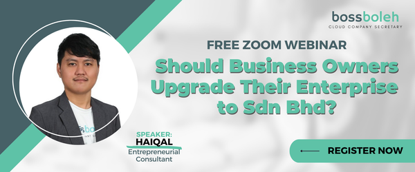 So what are the key differences between them? Learn about this and more with Boss Boleh's FREE "SDN BHD 101" webinar! In our efforts to help business owners confidently take on the entrepreneurial world, we will be discussing in detail about: