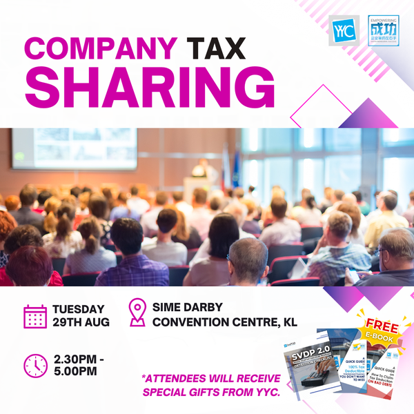 and finance professionals.    Secure your spot today by clicking BOOK NOW button below   *Limited to 300 seats only!!!     Attendees will receive a special gift from YYC.   🎁《SVDP 2.0 Detection Checklist》   🎁《A Quick Guide for 100% Tax Deductible Entertainment Expenses YOU DON'T WANT TO MISS》   🎁《A Quick Guide on How to Claim Tax Deduction ON BAD DEBTS》   Don't let taxes become an obstacle to your business's growth and success. Join us for this informative tax sharing and gain the insights you need to take control of your financial future.      |